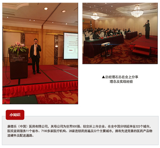 會上,我司總經理石磊對即將落地的新業(yè)務模式的目的和意義作了充分闡述,并分享了理念及實戰(zhàn)經驗,并宣布與康德樂(四川/重慶)醫(yī)藥有限公司達成合作意向,委托其在上述區(qū)域獨家開展速豐?銷售終端配送服務。這次與康德樂公司達成合作,也是我司借助新平臺的優(yōu)勢,共同推進醫(yī)療流通領域改革轉型的一大壯舉。